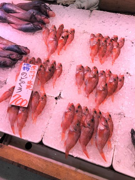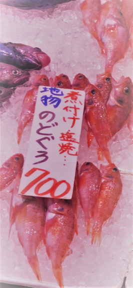しかし、コロナの影響で当面、平日は休業。目的が果たせず残念ですが、切り替えて隣の市場へ。いました【のどぐろ】です。
