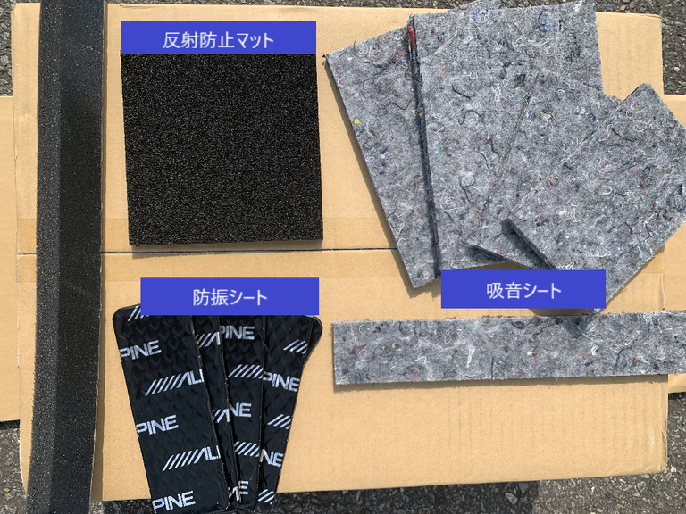 こちらが「デットニングキット」防振シートで振動を抑え、吸音シートで音の漏れを防ぎます~