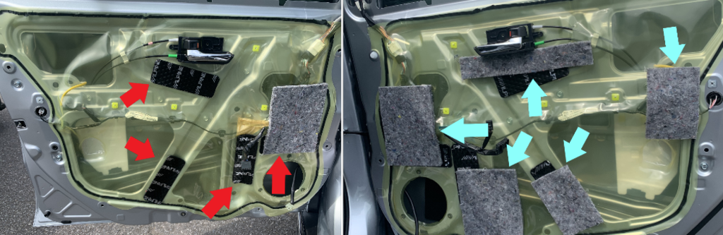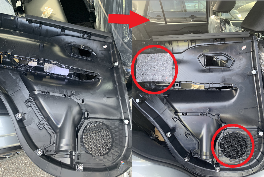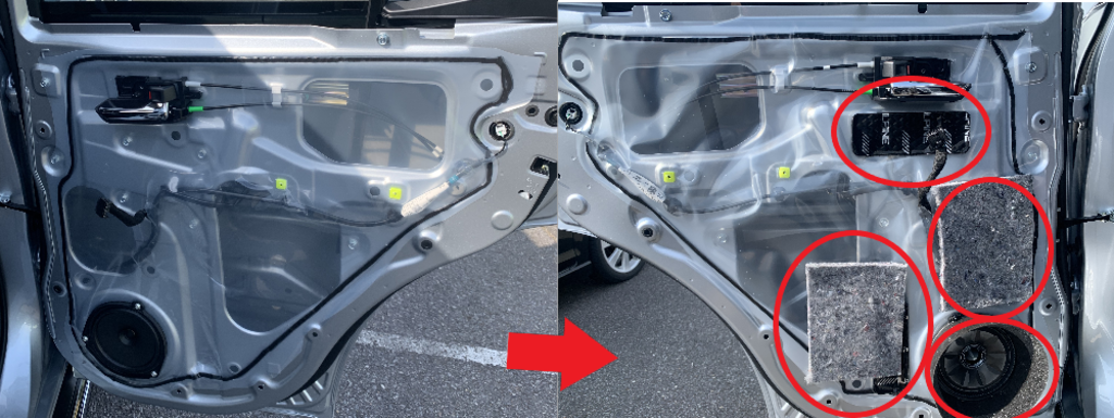 プレミアムサウンドシステムではまず「デットニング」となる作業をして、「音」の振動を抑えて「スピーカー」に仕事をさせてあげるというわけなんですよね( ̄ー ̄)