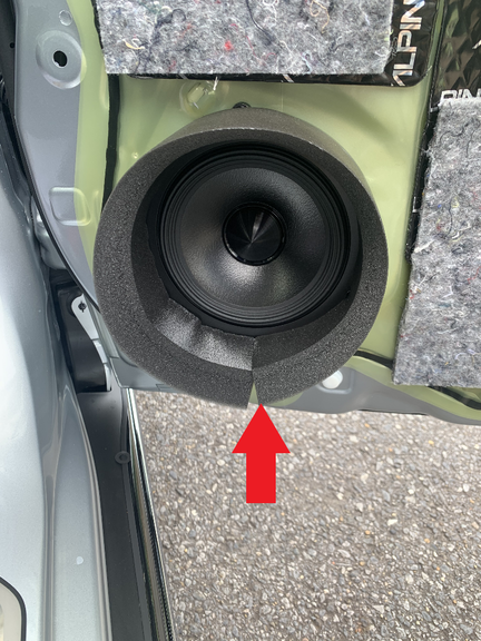 交換したスピーカーの周りにも遮音クッションを貼っていきます