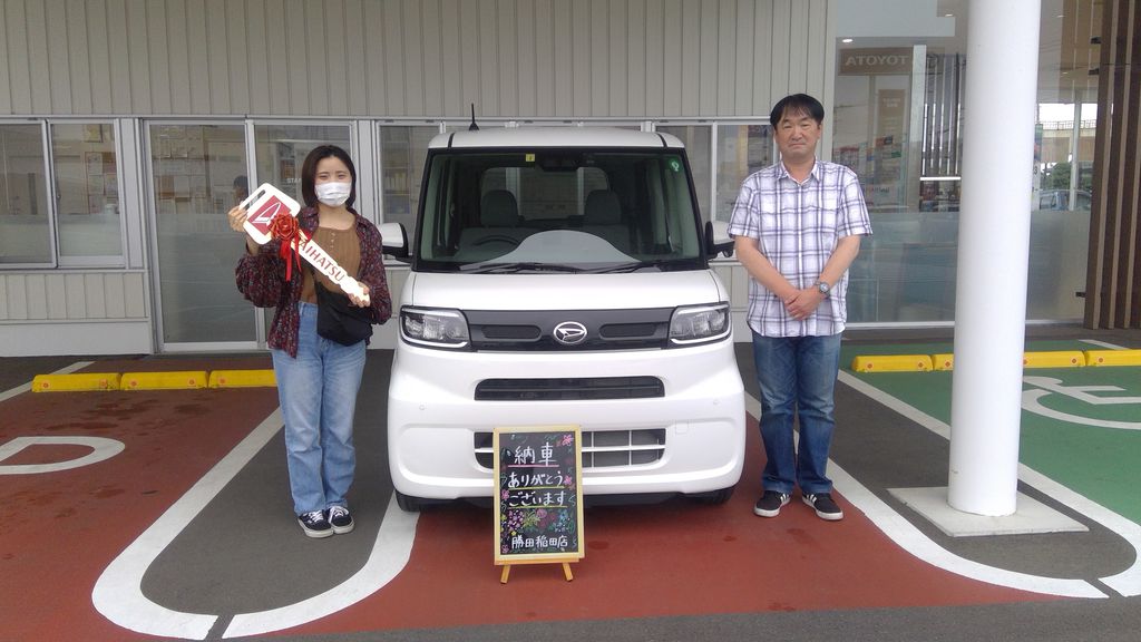 お客さんの声「分かりやすく説明してくれました‼早くなれるように頑張ります。」この度はご納車させていただきありがとうございました。タントでたくさんの思い出を作ってくださいね。今後とも末永いお付き合いをよろしくお願い致します。担当 住谷