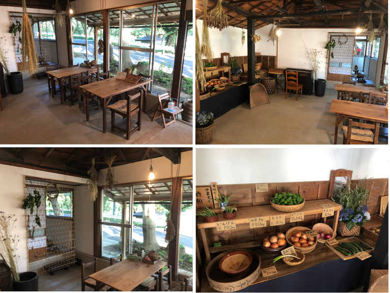 さて、こちらの「とみさんち」は牛久市にある「NPO法人 にじいろ」さんが営んでる野菜販売所でございまして、中にはご近所の方が栽培した野菜を販売してます。また中で人が集まってもらえるようにお茶ができる場所なのです!