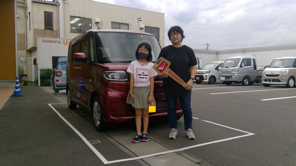 ~お客様の声~やっと念願のタントに乗れて幸せです。大切にします。この度はご納車させていただき誠にありがとうございます。今後とも末永いお付き合い、よろしくお願いいたします。担当:谷口
