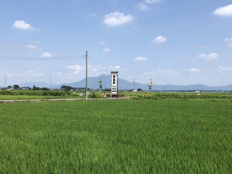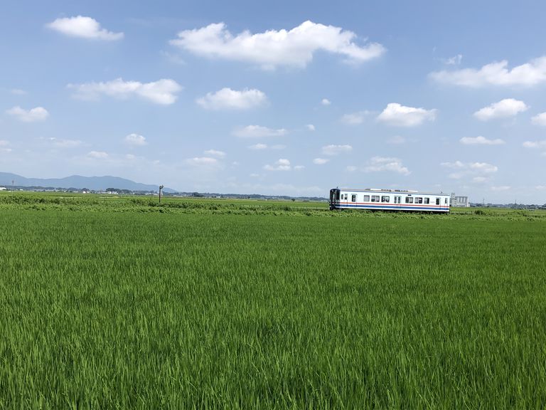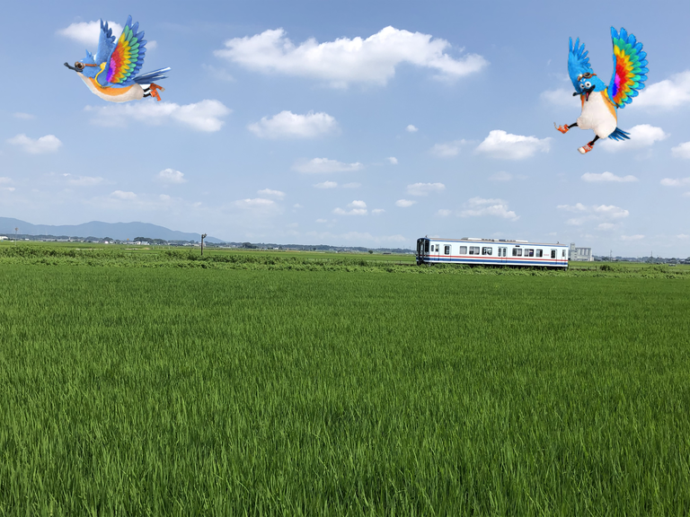 (東)サービス工場側です。緑と青のコントラストに日々癒されます。取手駅から筑西市の下館駅までを結ぶ関東鉄道の常総線が走っている様子をご覧いただくことが出来ます。タフトのイメージキャラクター「タフトン」、新型タフトならこの景色を、圧倒的な開放感と見晴らし良好な視界で楽しんで頂きながら、ドライブ出来ます♪ ※タフトンは、合成です。実際に下妻店周辺を飛んでいるわけではございませんので、ご了承ください。