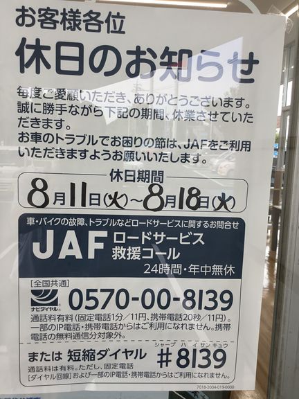 ダイハツ竜ケ崎店は8月11日から18日まで夏季休暇とさせていただきます。