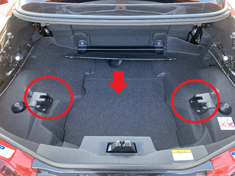 オープンの仕方は簡単!トランク内にあるパーテンションを丸の位置まで引っ張って