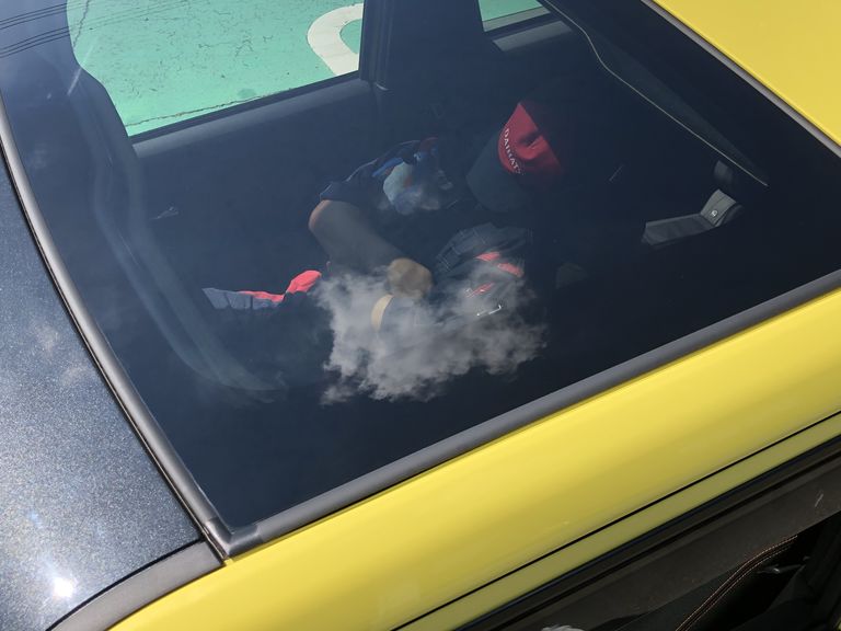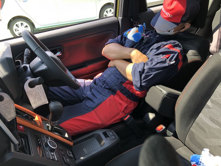 AM12:00🍚午前中の業務がひと段落し、待ちに待ったお昼ごはん🥄食事を終え、少しクルマでひとやすみ。青空に癒され、スヤスヤ・・・ZZZ。青空の下で寝転がっているような気分です。
