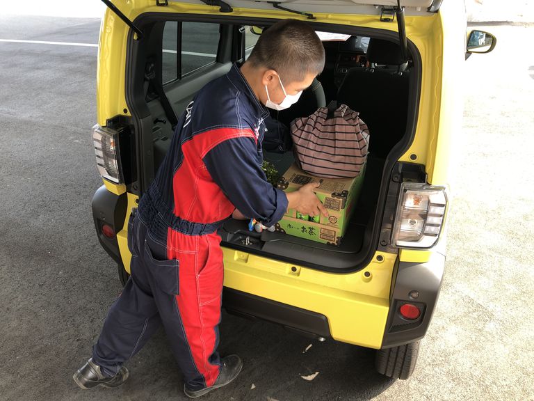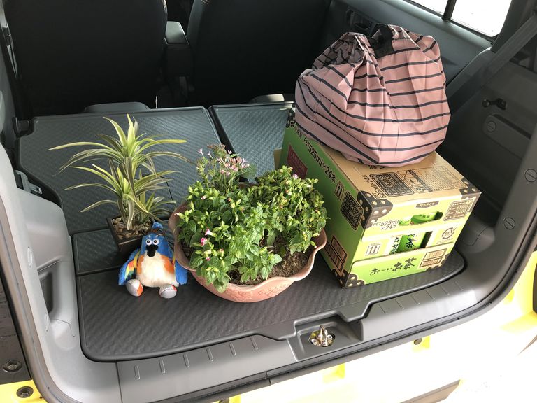 PM6時30分☽ 仕事を終え、今日は買い物をしてから帰宅です。汚れに強い荷室が自慢のタフト🚙 植木鉢等を積んでも安心です。シートバックとリヤドアの隙間を埋めることで、荷物の落下や汚れが入り込むのを防ぎます。