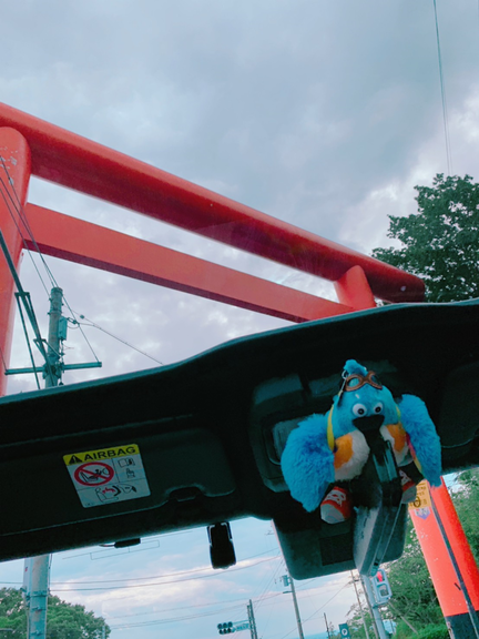楽々信号待ち中にドデカイ鳥居をみてほっこり♪