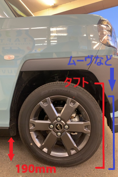 普通の軽自動車より二回り大きいタイヤと最低地上高190㎜の高さのおかげで走る場所を選ばない★
