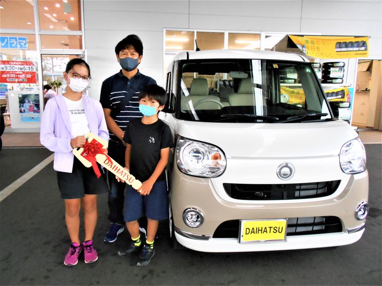 ~お客様の声~長く乗れるように大切にします。かわいい車なので嬉しいです。担当:石塚この度はご納車させて頂き誠にありがとうございます。かわいい2トーンのムーヴキャンバスで楽しい思い出を作って下さい。これからも末永いお付き合いをよろしくお願いいたします。