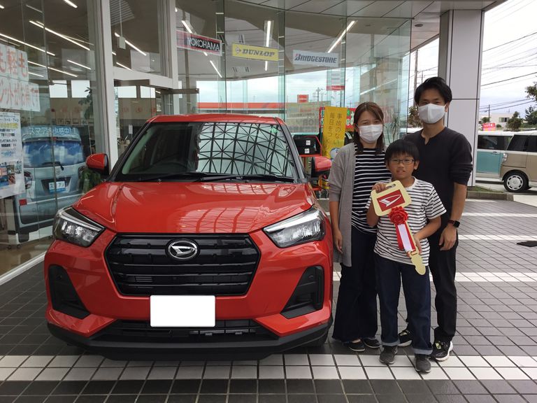 お客様コメント「ロッキーが発表されて、すぐに気に入りました!大切に乗りたいと思います。」ご納車させていただき、ありがとうございました。気に入っていただけて嬉しいです。今後ともしっかりフォローさせていただきますので、末永いお付き合いをよろしくお願いいたします。お子様とロッキーで楽しい思い出をたくさん作ってくださいね! 担当:萩谷
