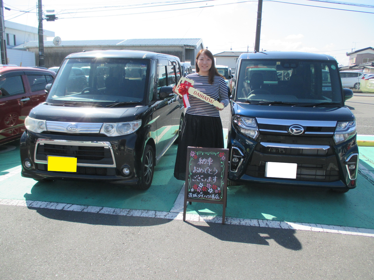 <お客様の声>2台目のタントカスタム!機能もアップしていて楽しみです☺担当の長岡さんにはとても親切に新機能を説明していただき、とても嬉しかったです✨大切に乗ります。引き続き、どうぞよろしくお願いいたします。<担当から>この度はタントからのお乗り換えありがとうございました!喜んでいただけてわたしも嬉しいです!たくさん思い出作ってください♪これからも末永くよろしくお願いいたします。 長岡