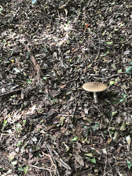 キノコが生えてますね。毒キノコのテングダケでしょうか?カサが平らなので立派に成長したんですね。