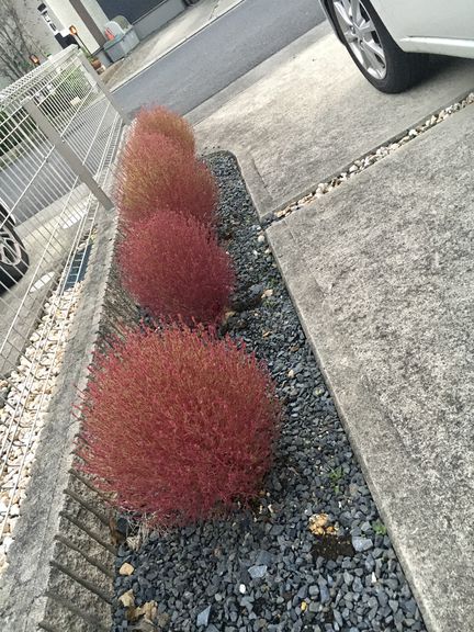 駐車場の横に可愛い5つのコキアが並んでいます🌳