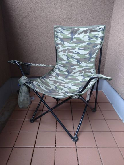 ★D店長★ キャンプ用のいすです💺 ジョイフル山新で購入しました!身近に迷彩柄がなかったので、目新しい感じがします。 七輪を買って、ここに座って、焼き肉をしたり、お魚を焼いたり・・・一人時間を満喫するのが今の夢です(^^♪