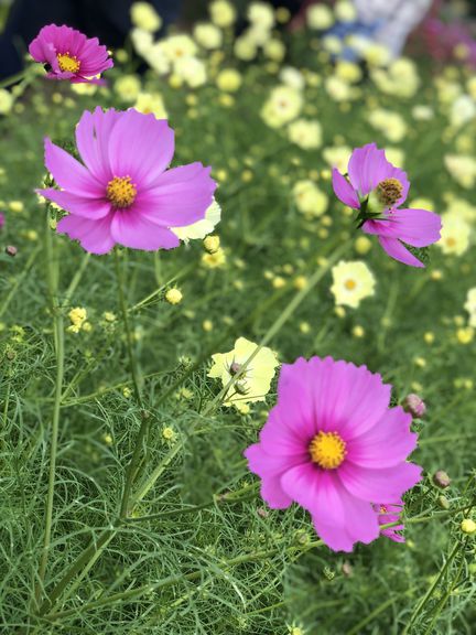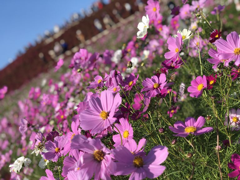 丘のふもとや園内各所には珍しい色のコスモスも咲いていました♪