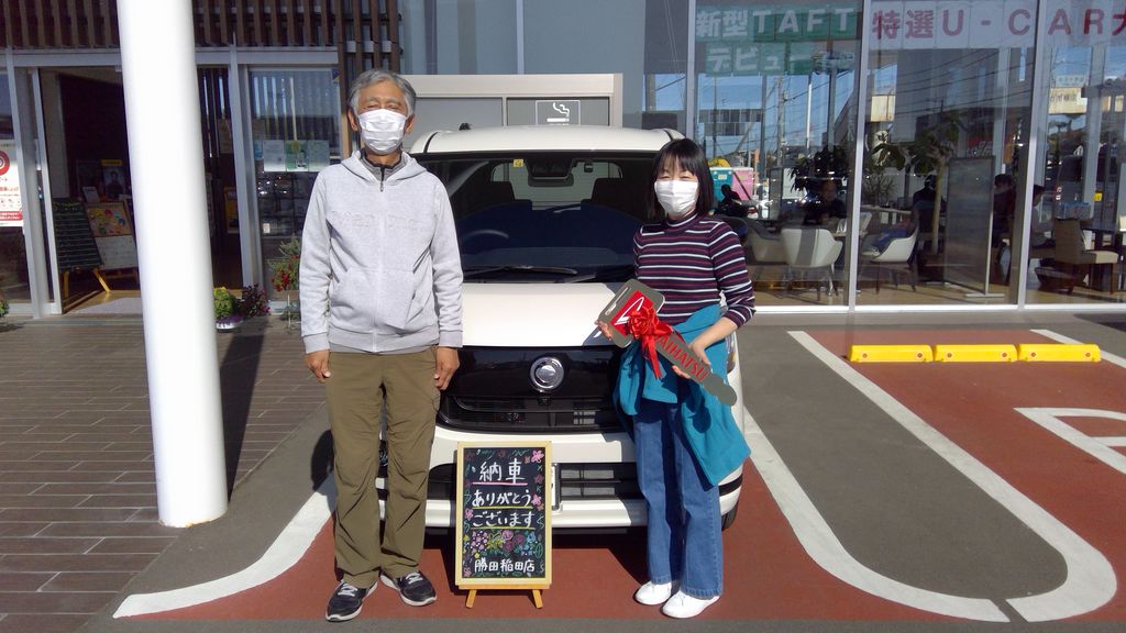 -お客様の声-笑顔の素敵なスタッフの方の対応がとても良かったです。この度はご納車させていただきありがとうございました😊キャンバスが生活に役に立ちますよう祈ってます!今後も末永いお付き合いをよろしくお願い致します♪担当:小川