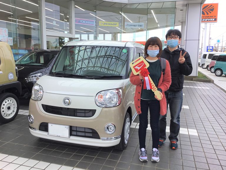 《納車御礼コメント》ご納車おめでとうございます。人気のベージュとホワイトのツートンカラーいいですね🎵キャンバスらしい可愛らしい印象で、個性が光っています。とても乗りやすいお車ですので、いろいろ思い出作って下さい。今後とも宜しくお願い致します。