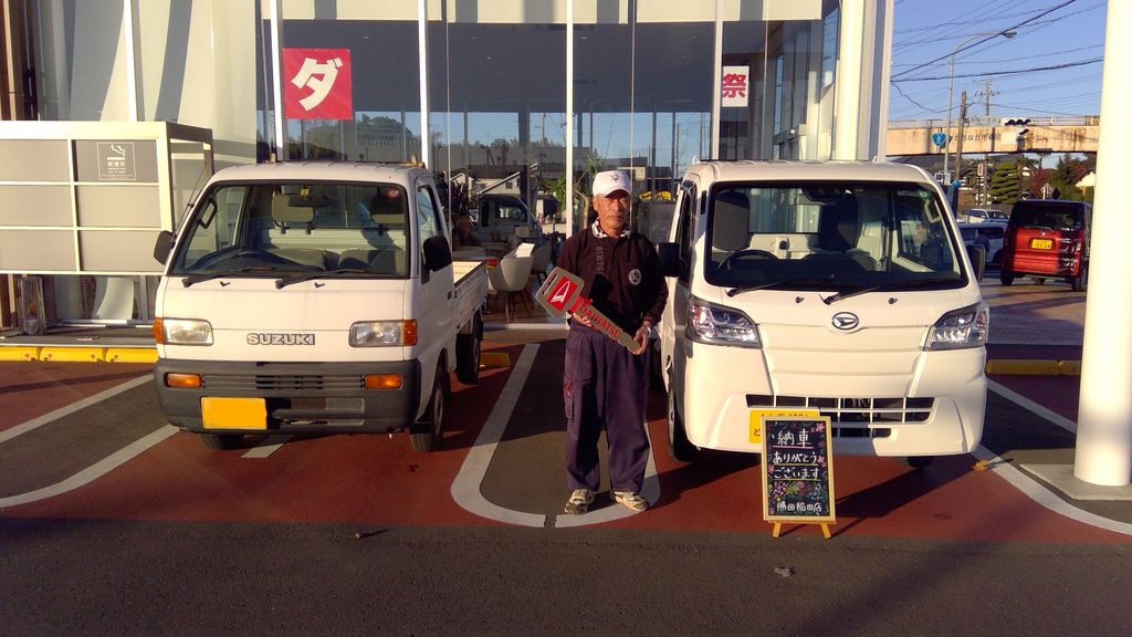 =お客様の声=音が静かで、力強く、 作業がしやすいと思います。普段、乗るのも、最適です。ご納車おめでとうございます。おかげさまでハイゼットも60周年を迎えることができました 村松