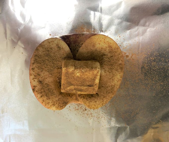 りんごを半分に切って、バターを乗せて、お好みで砂糖やシナモンをかけて