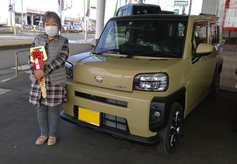 この度は、タフトのご納車ありがとうございました!素敵なカラーのタフトで思い出をたくさん作ってください!今後とも末永いお付き合いをよろしくお願い致します。担当:曽根