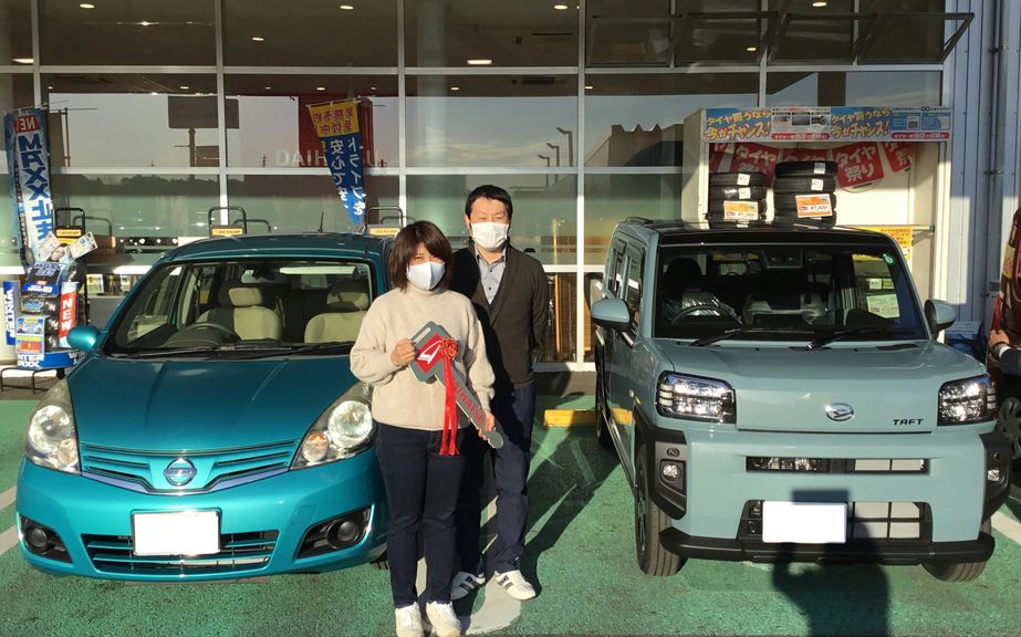 この度は、タフトのご納車誠にありがとうございました!タフトの乗り心地はいかがでしょうか?🚗✨お2人の思い出づくりに、タフトが役立つことを願っています!今後とも末永いお付き合いをよろしくお願いいたします。担当:鈴木