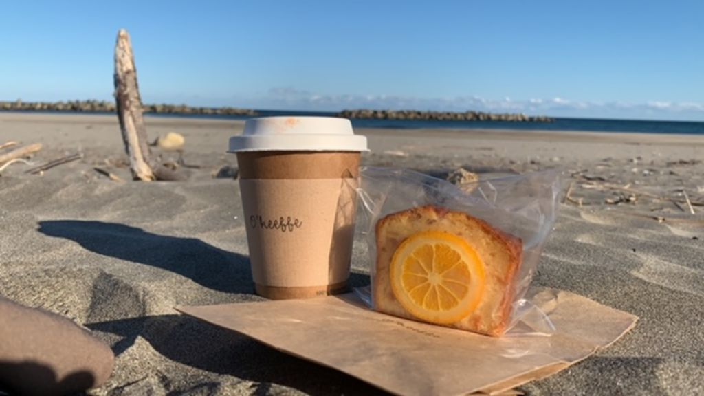先日仲間に会ったときに行きたいカフェがあって。でもお席がいっぱいだったのでテイクアウトして海でいただこうか~となったんですよ !