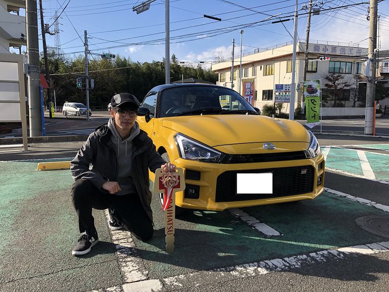 この度はご納車させていただき誠にありがとうございました!ご納車まで大変長らくお待たせいたしました(>_<)コペンGR最高にカッコイイです★!!青空とジョーヌイエローの組み合わせが映えております(*'ω'*)♪これからも末永いお付き合いをよろしくお願いいたします!担当:平塚