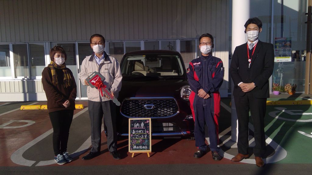 お客様の声「この度は車の購入にあたり、担当の方始めスタッフの皆様には大変お世話になりました。そして素敵なお車をありがとうございました。今後ともよろしくお願い致します。」この度はご納車させていただきまして誠にありがとうございました。お車気に入っていただけたようで大変うれしく思います。こちらこそ今後とも末永いお付き合いをよろしくお願い致します。担当 住谷