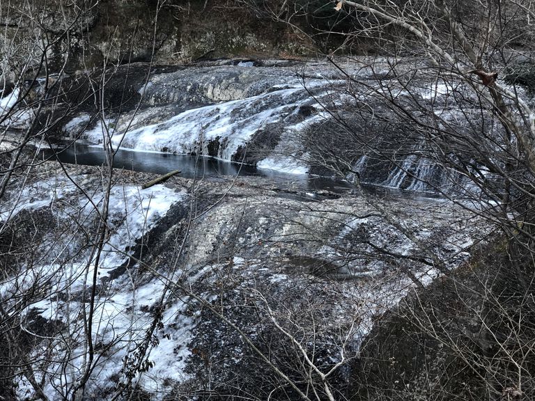 滝の上に着きました。川も凍っていますね。川って凍るんですね。