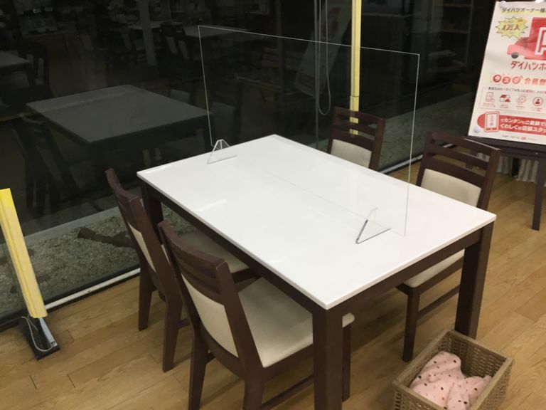 商談机にも飛沫を抑えるパーテーションを設置しております。営業マンの長い話でも安心ですね。