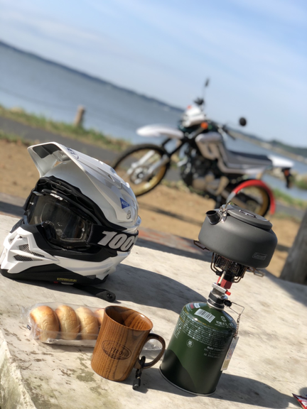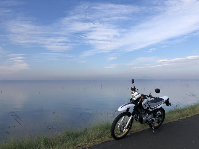 緑のバイクは「セロー250」です。身近な場所にはもってこい!霞ヶ浦湖畔にて✨