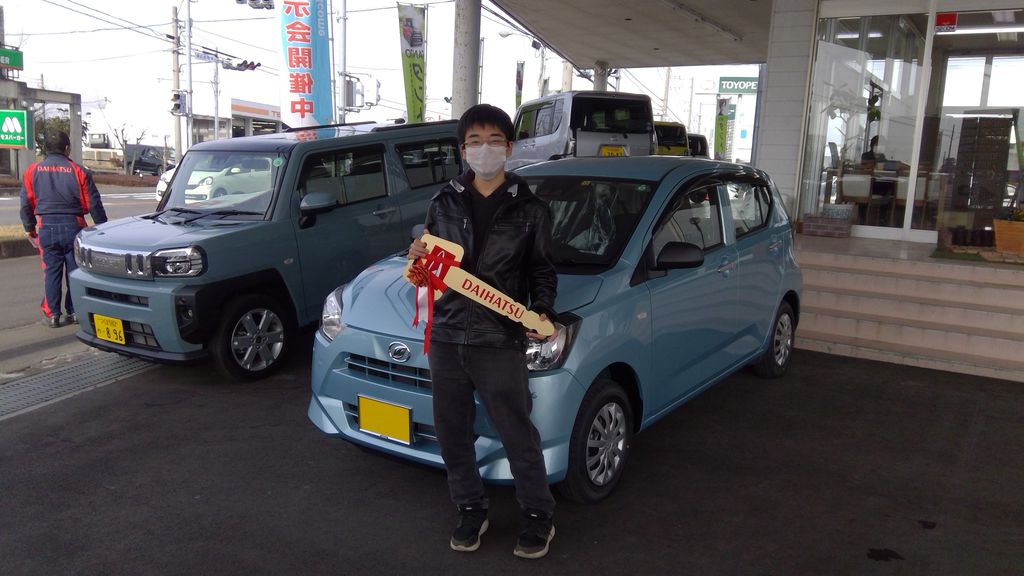 この度は、ミライースのご納車ありがとうございました!素敵なカラーのミライースで思い出をたくさん作ってください!今後とも末永いお付き合いをよろしくお願い致します。担当:曽根