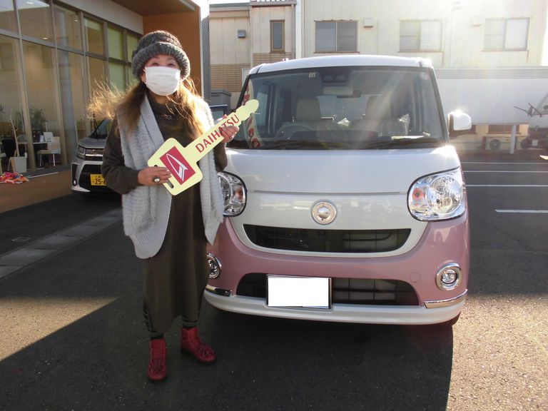 ~お客様の声~私の一目惚れでした。とても可愛くて運転するのが楽しみです。大切に乗ります。この度は、ご納車させていただき誠にありがとうございました。今後とも末永いお付き合いよろしくお願いいたします。担当:大方