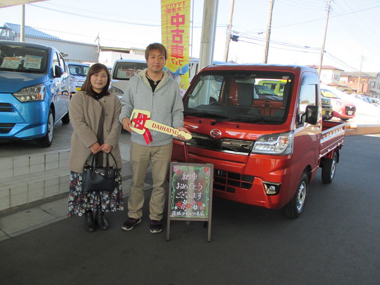 <お客様の声>待ちに待ったオレンジの軽トラ!!わが家の働き者になってもらいます。担当の方、よくしていただきありがとうございました。<担当から>こちらこそありがとうございました。目を引くオレンジがとても素敵でお似合いです。またこれからカスタマイズされていくのもたのしみですね♪末永くよろしくお願いいたします!担当 長岡