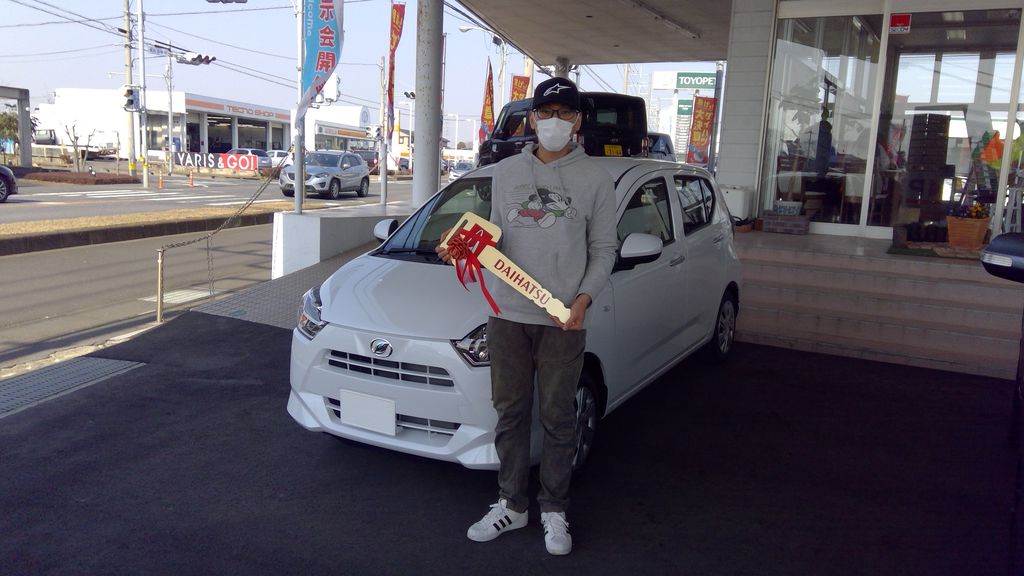 この度は、ミライースのご納車ありがとうございました!素敵なカラーのミライースで思い出をたくさん作ってください!今後とも末永いお付き合いをよろしくお願い致します。担当:曽根