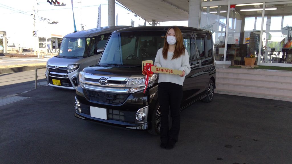 この度は、タントカスタムのご納車ありがとうございました!カッコいいタントカスタムで思い出をたくさん作ってください!今後とも末永いお付き合いをよろしくお願い致します。担当:曽根