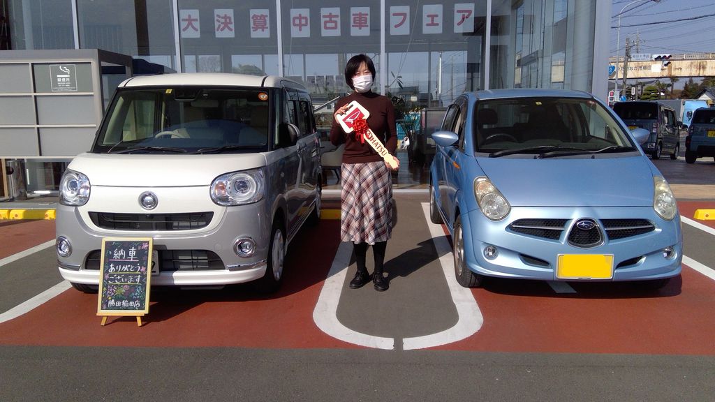 お客様の声「長年乗った車からの乗り換えなので少し寂しさもありましたが、実物を目にしたら新しいキャンバスが可愛くてそれも吹き飛びました。今までよりも車体が少し大きくなったので、ゆっくり運転していきます。」この度はムーヴキャンバスをご納車させていただき誠にありがとうございました。気に入っていただけたようで嬉しく思います。是非たくさんの思い出を作ってください!担当 住谷