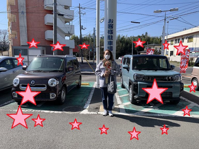 この度はご納車させていただき、誠にありがとうございました★ミラココアからタフトへのお乗りかえありがとうございました!(^^)!青空にレイクブルーのタフトが大変マッチしております!これからも末永いお付き合いをよろしくお願いいたします(*'ω'*)担当:萩谷