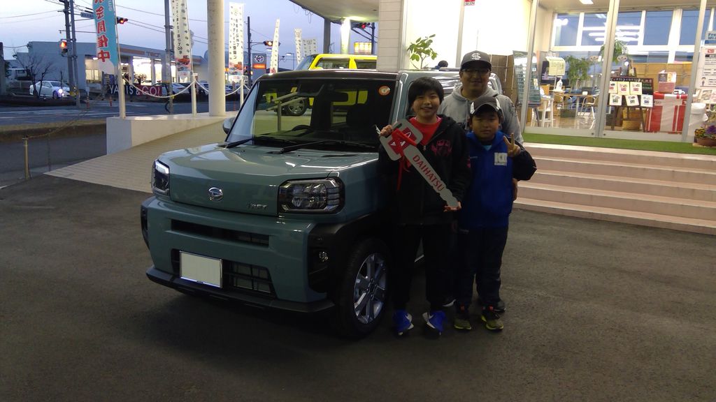 この度は、タフトのご納車ありがとうございました!可愛らしいタフトで思い出をたくさん作ってください!今後とも末永いお付き合いをよろしくお願い致します。担当:曽根