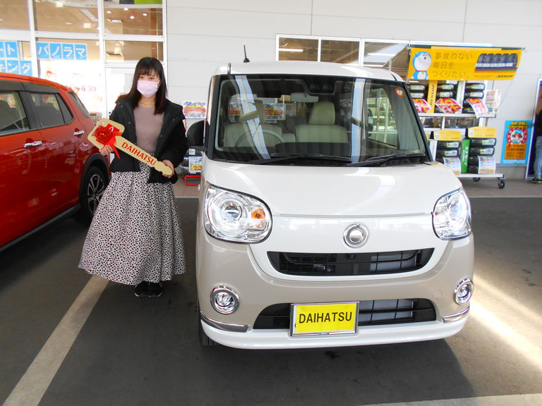 ~お客様の声~新車購入は少し緊張しましたが、担当の方やスタッフの方のお陰で無事納車することが出来ました。これから、沢山乗って楽しんでいきたいと思います。ありがとうございました。担当:石塚この度はムーヴキャンバスをご納車させていただきまして、誠にありがとうございました。これからも末永いお付き合いを宜しくお願い致します。