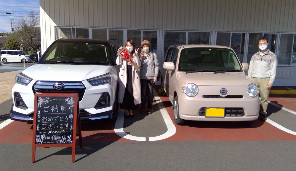 -お客様の声-新しい愛車とともにいっぱい思い出を作っていこうと思います。新しい相棒ロッキー!!これからよろしくね!!可愛いココアからカッコ良いロッキーになりましたね♪パワーアップした車で、走りも快適になると思います(^^)!今まで同様に末永いお付き合いをよろしくお願いいたします。担当 山本