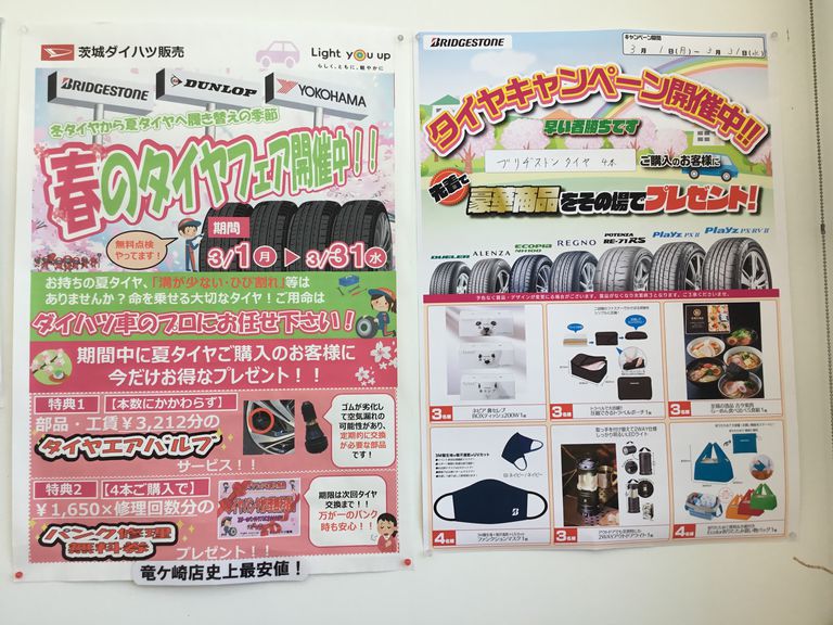 ダイハツ竜ヶ崎店では現在タイヤフェアを開催しております!!