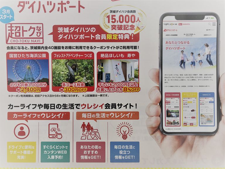 超トクなびは茨城ダイハツのダイハツポート会員様限定の特典で、茨城県内全40施設をお得に利用できるクーポンサイトになります。