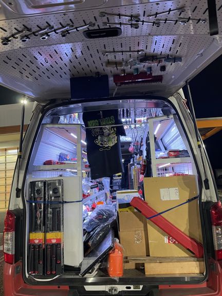 MACさんのワゴン車の中は多種多様な工具が沢山置いてあり、欲しい工具は大半置いてあって常に助かっております。もちろん破損してしまった工具の修理もお願いしております!