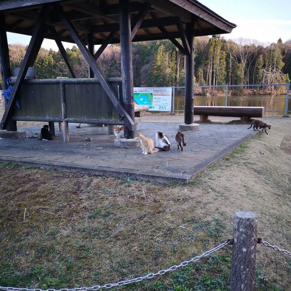 駐車場やトイレ、ベンチも整備されており、付近ではネコちゃん達が集会を開いているみたいです😊