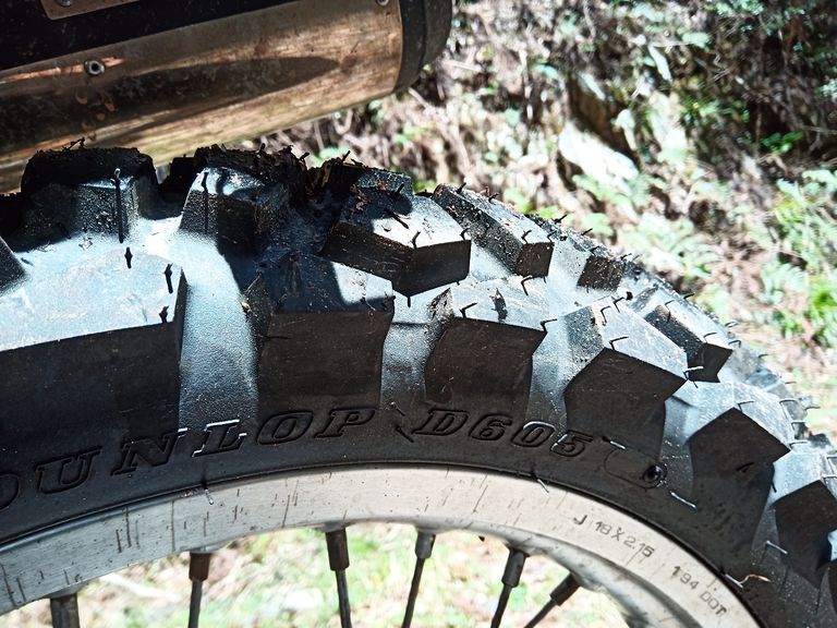 タイヤはオンロード用だったので、オン・オフ兼用のタイヤに交換しました。