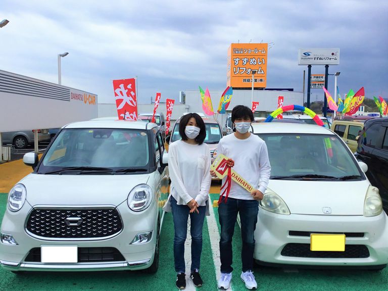 この度は、キャストのご納車誠にありがとうございました!パールホワイトのキャスト、お客様にとても良くお似合いです(*^^*)✨仲良しご夫婦の思い出づくりに、キャストが役立つことを願っています!今後とも末永いお付き合いをよろしくお願いいたします。担当:鈴木