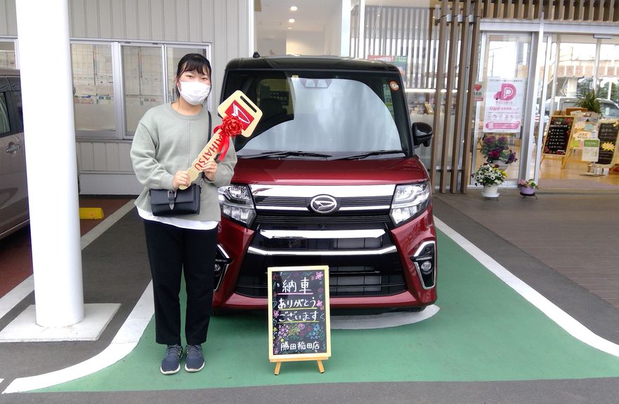 -お客様の声- 初めてのmyCar🚗 最高!!記念となる1台目にタントを選んでいただきありがとうございます!お仕事にプライベートに充実させてくださいね(*^^*)これからも末永いお付き合いをよろしくお願いいたします。担当 山本